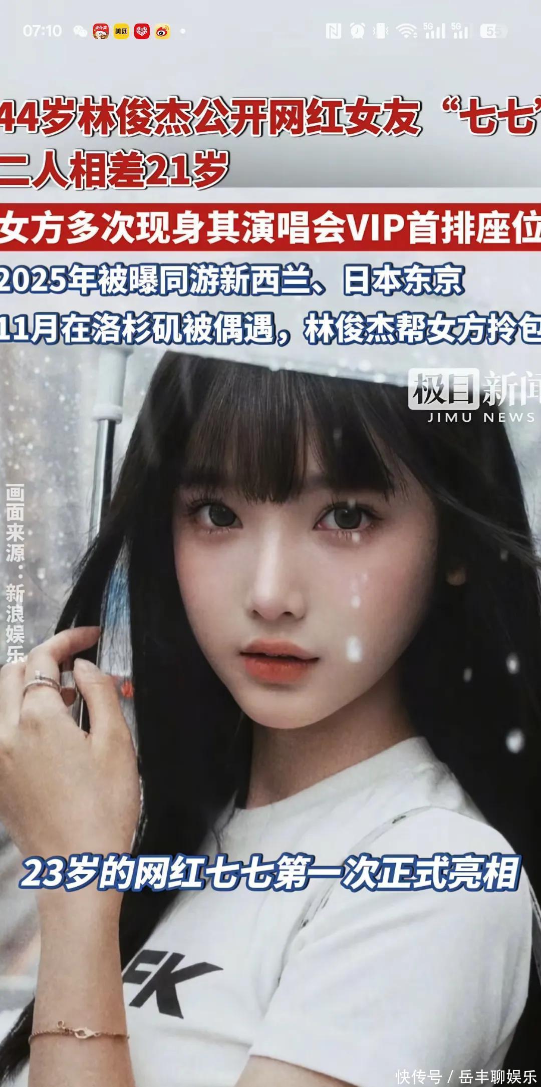 这事儿为啥让大家这么震惊?因为这姑娘不是圈内大咖,也不是什么素人,而是个叫“七七”的网红。更劲爆的是,两人足足差了21岁!这消息一出,评论区直接炸锅,有人惊掉下巴,有人直呼“磕到了”,还有人开始疯狂扒皮,想看看这姑娘到底有啥“通天”的本事,能把眼光极高的林俊杰拿下。21岁年龄差不是“父女恋”?这才是真正的“门当户对”说实话,一开始我也觉得这年龄差有点大,乍一看确实容易让人误会。但你要是深入了解这姑娘的背景,你就知道什么叫“人不可貌相”了。这位“七七”(Annalisa),虽然挂着网红的名头,但人家可不是那种只会拍拍短视频的花瓶。她是美籍华裔,2001年出生,今年才23岁左右,正是最好的年纪。重点是,人家还是帕森斯设计学院的高材生!这可是全球顶尖的艺术院校,能进去的都不是一般人。